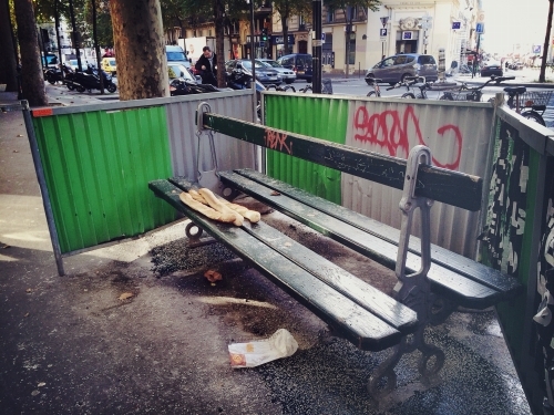 道中ベンチの上にフランスパンが置いてありました。流石パリジャン。※因みに同じ光景を3回位見掛けています。