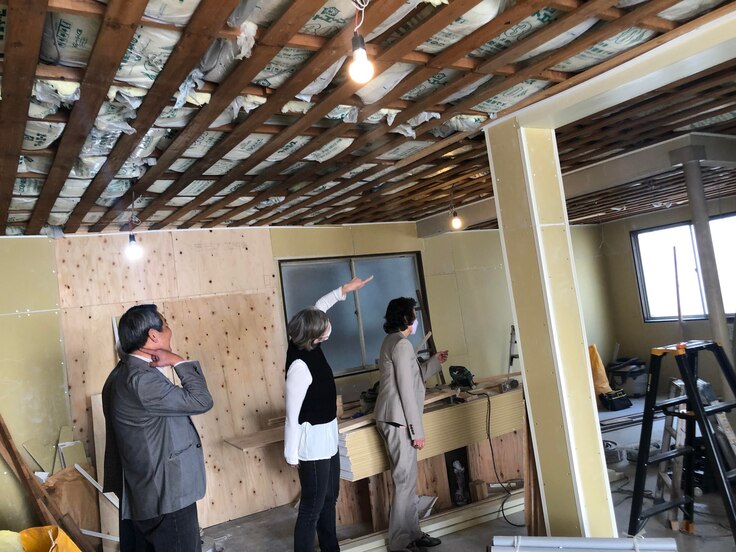 2.施工は、地元の工務店、日本環境システムズさんに依頼しています。専門家に耐震診断を依頼、それに基づき工事を行い、住宅街内の施設なので、防音に留意し、冷暖房、照明工事、水回り工事等を行います。
