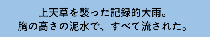 しかし、そんな大切な場所は、数日前の大雨で多大なる被害を受け、たった数時間で変わり果ててしまいました。