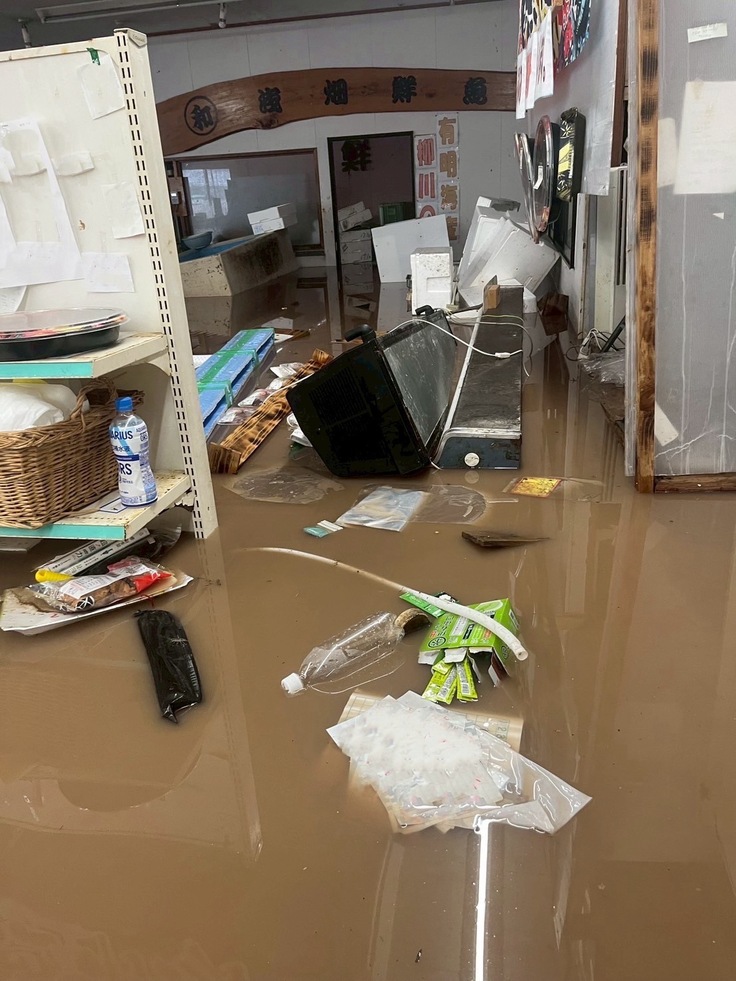 「大雨で店内浸水の鮮魚店 わずか2日で営業再開 '' 涙が出る思いだった。'' 」
