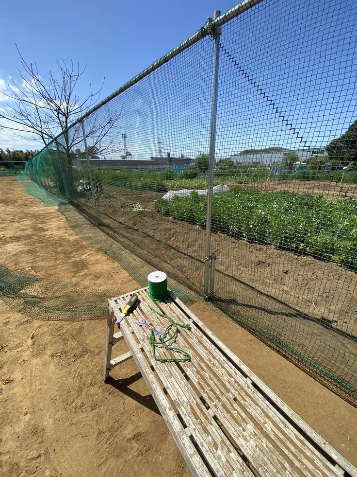 防球ネットを取り付ける単管パイプの設置作業を施工してもらいました。