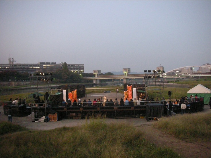 一浪して1970年に東京へ出てから、再び中島を訪れたのは2010年2月でした。40年の歳月が流れて、かつて『東中島演劇工房』のあった建物は様相を変えており、集った年上のメンバーとも散り散りとなっていました。ただ、時を経ても共通していたのは演劇でした。今度は、西中島町の河川敷を会場に、演劇と音楽を組み合わせた交響劇『神々の微笑』を野外公演として開催しました。この年の第25回国民文化祭おかやまの連携事業として創作した作品で、古代吉備を治めた温羅のルーツは、ペルシアから渡来した遊牧騎馬民族であったという物語を、友人の編集者に書き下ろしてもらい、私が演出して、西中島町との繋がりが始まりました。