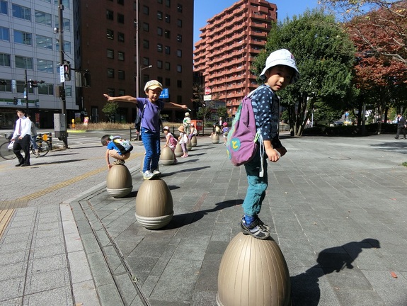 子どもたちはこのどんぐりに登って周りの景色を眺めたり、ベンチのように座って休憩したりと、いつも取り合いになるほど大人気です。