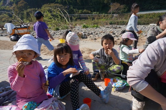 ぽかぽかお天気、高く澄み渡る秋空の下、子どもたちの食欲も止まりませんでした!