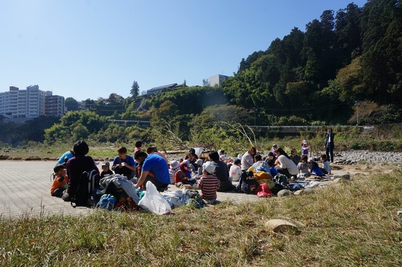 保育園の畑で収穫したさつまいもを、広瀬川の河原で焼いて食べるという毎年恒例の「やきいもパーティー」。