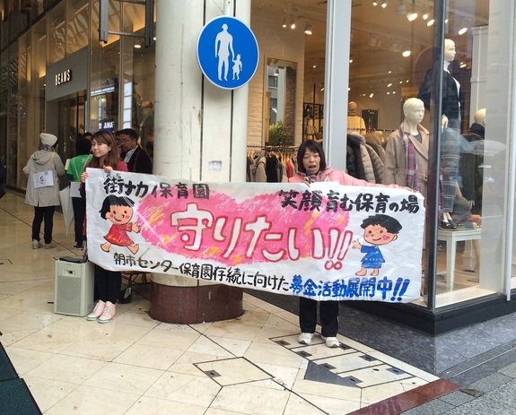 11月14日、雨の東二番丁通りに「朝市センター保育園です。認可移行募金お願いしまーす。」の声が響き渡りました。