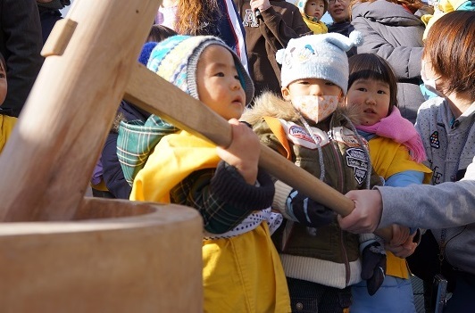伝統文化や季節の伝統行事に触れ、健やかに育ってほしいという願いと思いがたくさんつまった朝市センター保育園のもちつき会です。