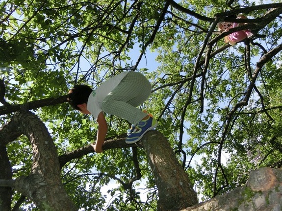 真っ直ぐでない太い幹は足をかけたくなるのも子ども心。