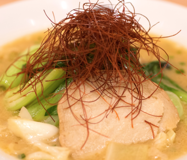 チャーシューのってますね!チャーシューだと一般的にはポークを使いますし、最近はチキンベースのチャーシューも存在します。