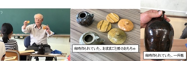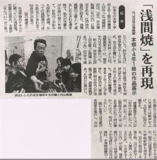 子ども達は、木村さんからお話をお伺いし、「浅間焼」の歴史や特徴などを知ると同時に、「粘土があるなら、自分達で作ってみたい。」と新たな「もの」との出会いを果たしたのでした。