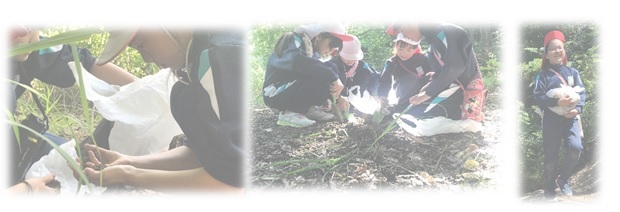 子ども達は、まるで「宝物」でも掘り出したかのように、粘土質の土を次々に掘り出しては、袋に入れていきました。