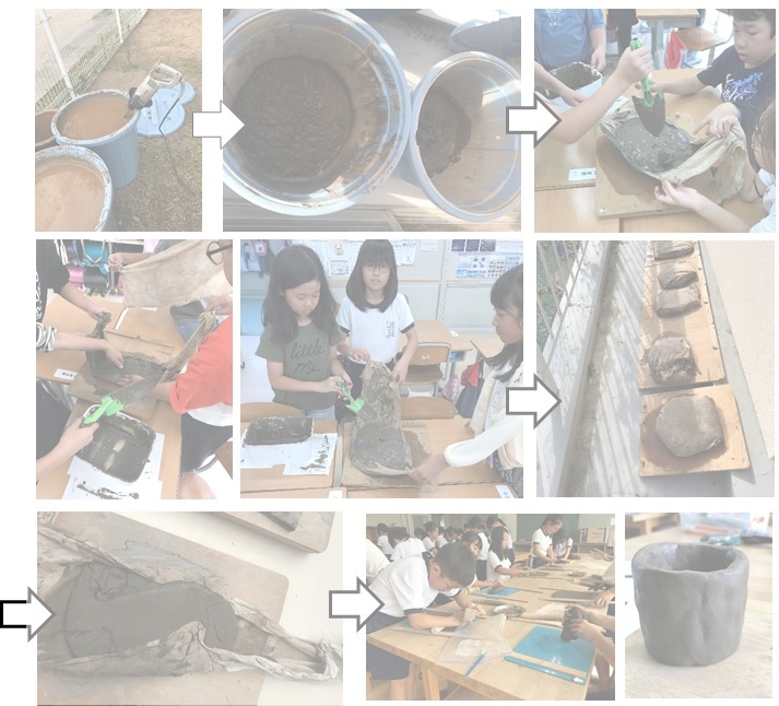 その後、私が、子ども達に「勉強も取り戻したし、体育参観も終わったね。」と伝えると、子ども達からは、「それなら、総合できるじゃん‼」の声。総合的な学習の時間の授業はしていませんでしたが、子ども達の中には、「浅間焼展とお祭りで浅間温泉を盛り上げよう」という気持ちは消えていた訳ではなかったのでした。そこで、浅間焼を体験したことがない子ども達にも浅間焼について分かってもらうために、浅間焼について話をし、「新型コロナウイルス感染拡大防止の観点から、展覧会やお祭りは自粛しなければならないけれど、浅間焼を作ってみない?」と話すと、「やる!」「やってみたい!」という反応。私が「今年も粘土を取りに行こうか。」と言うと「行こう!」ということになりました。