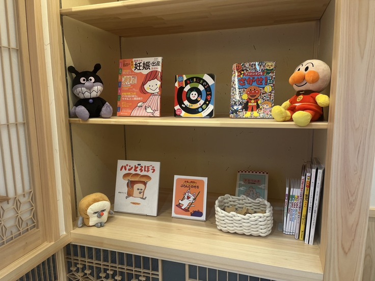 お子さまが楽しく過ごせるよう、少数ではありますが絵本や積み木を用意しております。