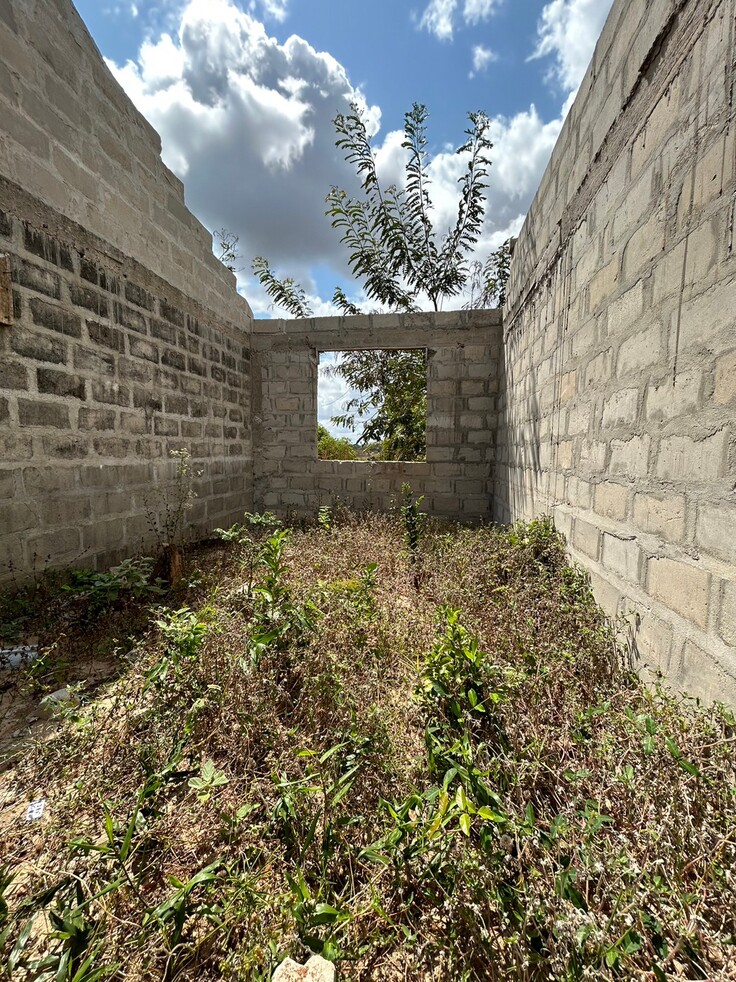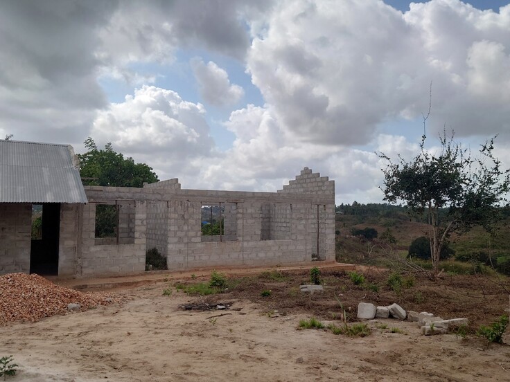 ここには2023年2月の第10回渡航で建設した教室があります。学校がタンザニア政府から認可を受けるために必要なものであるため、校長先生と話し合いを重ねたうえで建設支援を始めました。この教室は校長先生が生徒の授業料から集めた資金と、私たちASANTE PROJECTの日頃の活動に賛同してくださる方々から集まった資金により建設されました。しかしながら、第10回渡航では予算が不足したため屋根と床がなく、未完成の教室となってしまいました。