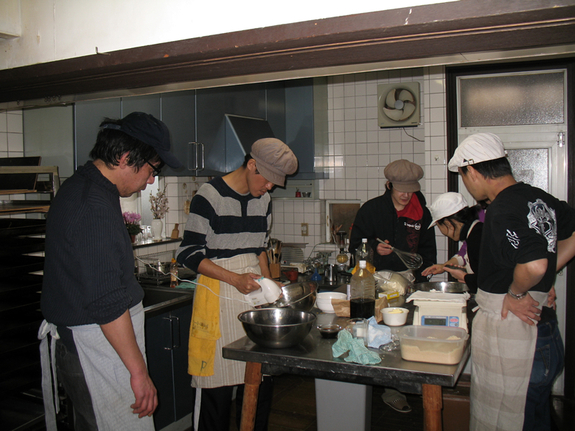 そこで、元ホームレスの仲間と私たちで話し合い、一緒にパン作りをしたいと提案をしました。2011 年の夏のことです。山田さんのため、今も苦しい路上生活をしている仲間のために役に立ちたいと考えました。最初は驚いた山田さんも、一生懸命働くみんなの姿に感動し、パンを焼くオーブンや、パンを作る道具、そしてご自宅を作業場として私たちに提供していただき、毎週いっしょにパン作りをすることになりました。