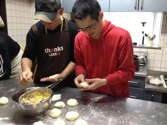 つよい風がふくなか、今日もパン作りメンバーが集まりパン作りを頑張っています!