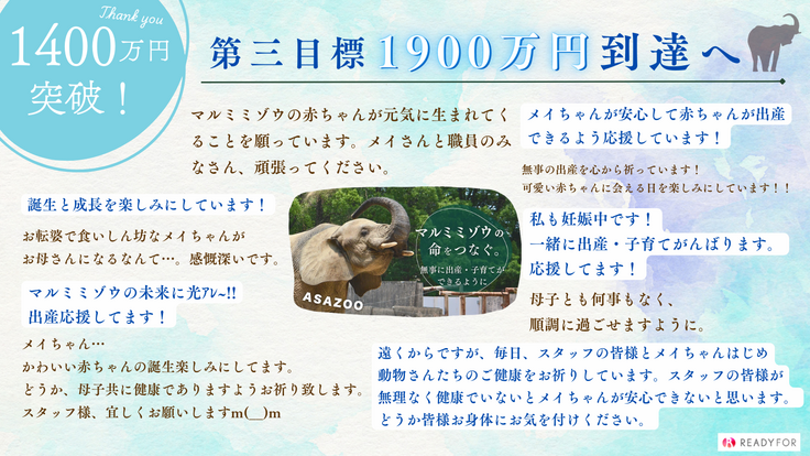 「広島市安佐動物公園|マルミミゾウの赤ちゃん誕生をみんなで支えよう!」プロジェクトに本当に多くの皆様からご支援、応援いただきありがとうございます。