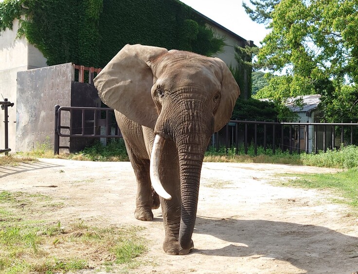 クレートから出るのもスムーズで、秋吉台のゾウ担当の方の号令に合わせて、部屋の手前のパドックという空間までは問題なく出てくれました。しかし、その後新しい環境にとまどったのでしょう、部屋の中で落ち着いてはくれず、餌を取りに入ってもすぐにパドックまで戻ってしまいました。