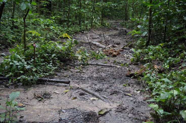また、マルミミゾウが木を食べたり、土の中のミネラルを摂取するために地面を掘ることで、森林が一部開拓されることがあります。このような森林の中にできる開けた場所は、光が届きにくい森林の中では育ちにくい植物が育ったり、ゾウの掘った穴から水がしみ出す場所となります。ゾウだけではなく、他の生き物にとっても草を食べ、水を飲む重要な場所になります。