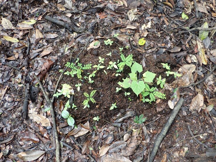 マルミミゾウが食べた果実などに含まれる種子は、一部が消化されずにそのまま糞に混ざって排泄されます。そしてそこで芽をだします。マルミミゾウによって様々な種が広範囲に撒かれ、森林の多様性を作り出しています。このため、マルミミゾウは森林の「種子散布者」といわれています。