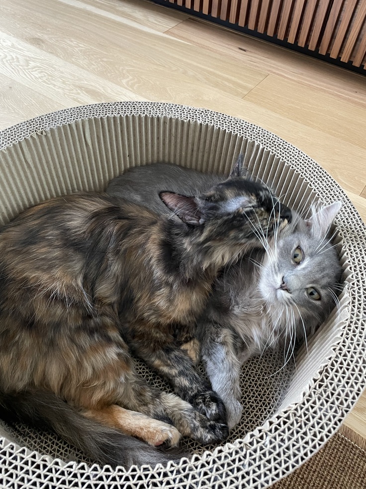 今日は、かわいく2匹でダンボールに入ってお昼寝してました😊