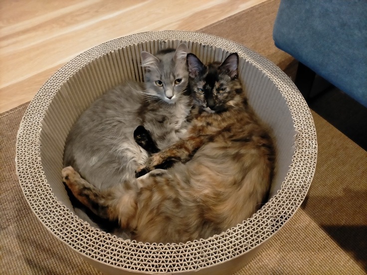 ステラの寝ぼけ顔半目です。仲良く2匹で寝て仲良し兄弟です。