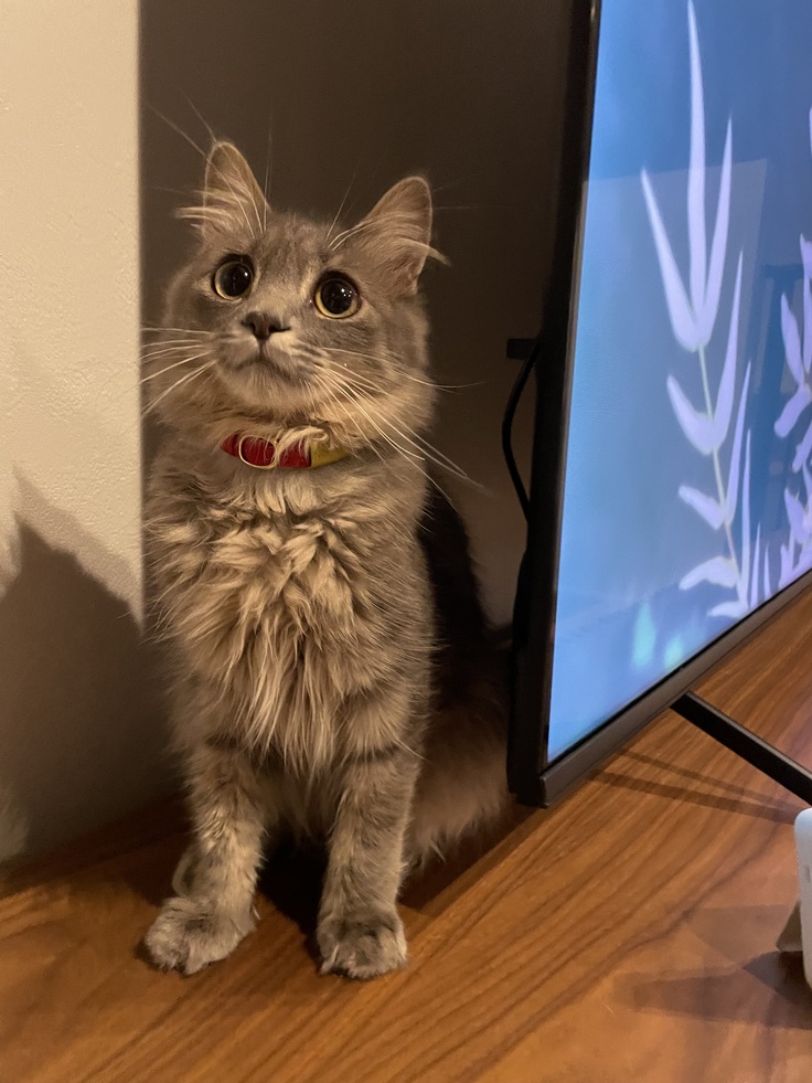 ↑キャットタワーの上でこのポーズ凛々しいです。
