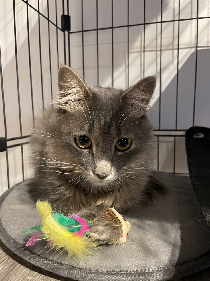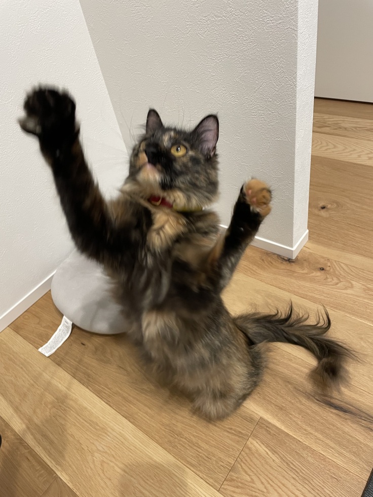 現在アッシュの様子は、変わらず小食偏食で体重が、2.5キロで停滞中です。早く3キロ超えてほしい。腰から後ろ足も動き変わらないですが、前足と兎跳びのような走りでカバーしています。うんちの粗相が続いてますが病気の影響かアピールかトイレが気に食わないのかまだわからないです。