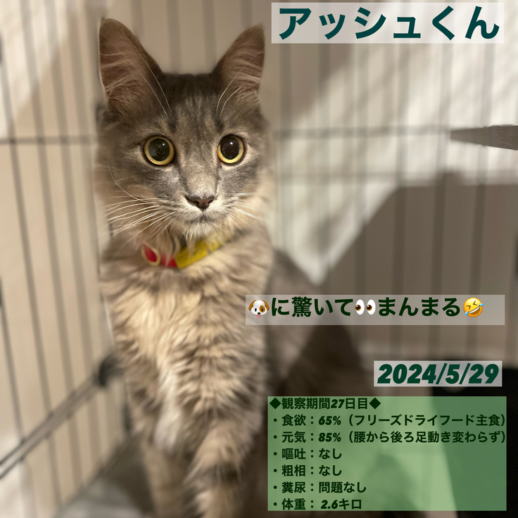 2匹とも未実施のため不安です。アッシュは腰から足が後遺症があるので無理ではないかと思ういますが別部屋にする事にしました。あとは遊ぶ時はオムツ付けてもらう!