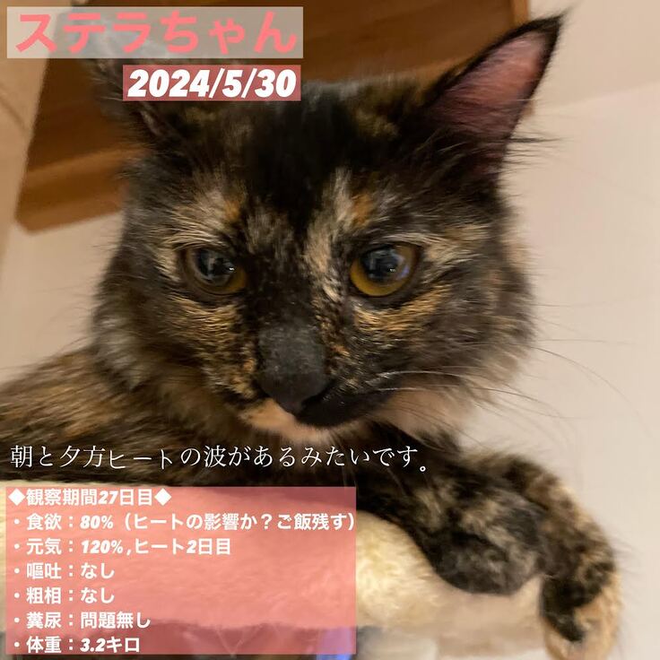 昨日お伝えしましたが5/29の朝方からステラのヒートがはじましました。