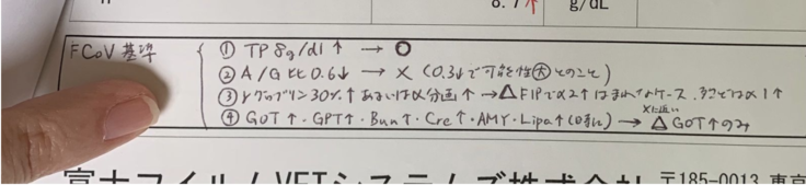 A/G比率が通常よりも低いことからFIPの可能性が高いとこの段階で言われました。