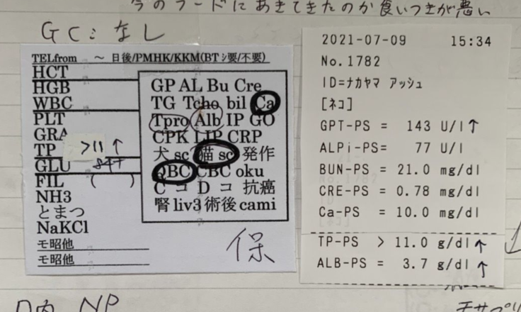 心配なので定期検診も兼ねて7月9日に血液検査をかかりつけの病院へお願いしました。