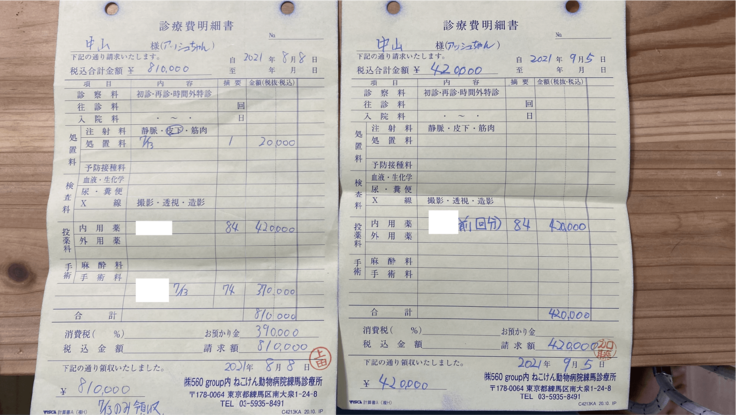 (血液検査代やFIP以外の治療薬費用は中山が負担します。)