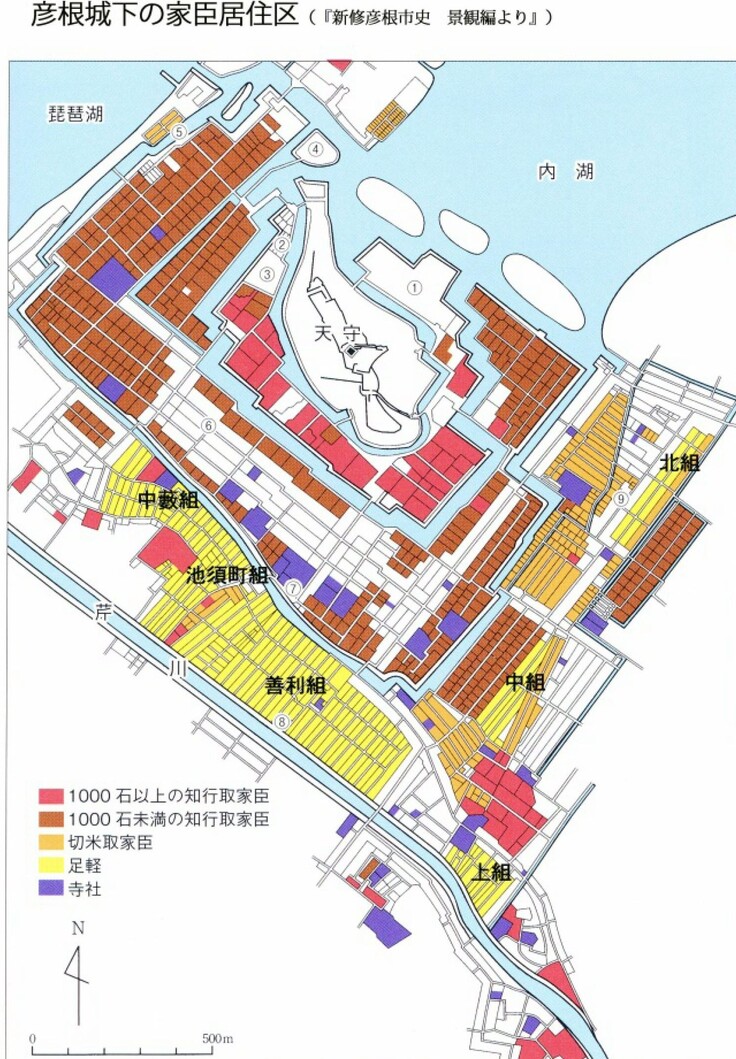 彦根藩の足軽は、中藪組、善利組、切通組、大雲寺組、中組がそれぞれ設置されました。中でも善利組の規模は大きく、幕末には700戸を数えました。間口5間(約9m)、奥行10間(約18m)ほどの敷地に、木戸門と塀に囲まれた小さいながらも武家屋敷の体裁を整えた屋敷群がつくられました。藩によっては「足軽長屋」が多い中、彦根藩では一戸建て庭付きの屋敷が与えられたのです。