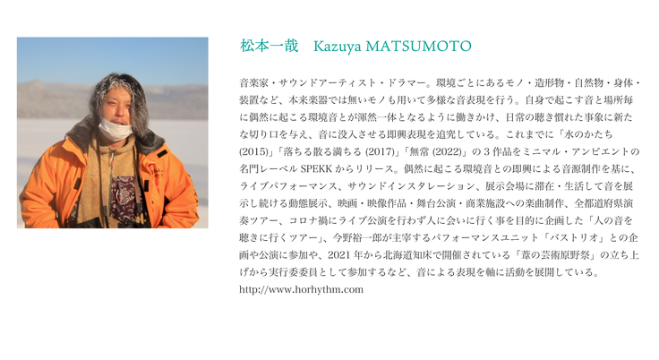 本芸術祭は、斜里町で生まれ育った農家や編集者、土地の魅力にひかれ斜里に移住した表現者、そして全国でクリエーションを行う表現者たちがこの土地で出会い、生まれた有志のプロジェクトです。
