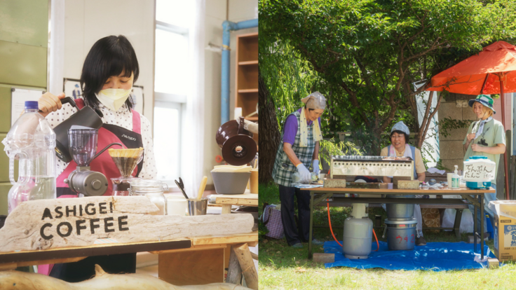 あしげいメンバーが淹れる「あしげいコーヒースタンド」では、コーヒーを片手にゆっくりと会話や作品鑑賞を楽しめます。