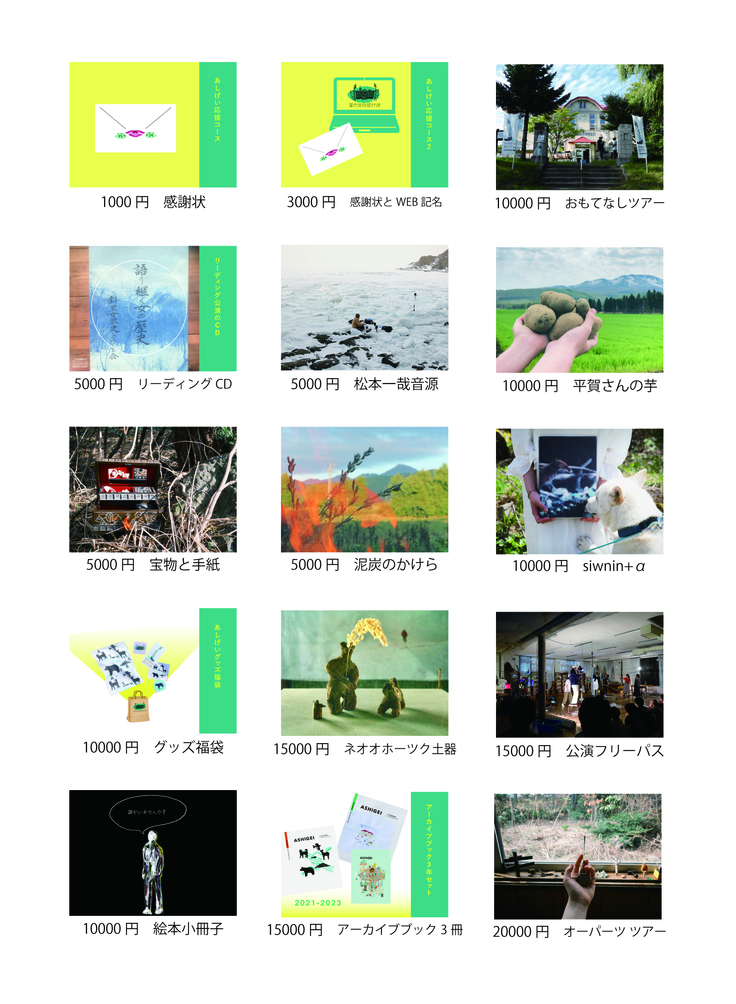 私たちの活動の根本には、知床の風土と、人々の営みに対する敬意があります。地域文化の再発見と創出を実践するあしげいには、北海道開拓史などの歴史的な価値、北方世界の南限であるオホーツク・知床の文化的な価値、地域と共創していく現代美術としての価値があります。これらを一過性のイベントとして終わらせることなく、全国的に発信し、未来に手渡してゆくための「アーカイブ」制作を、クラウドファンディングを通して継続していきます。