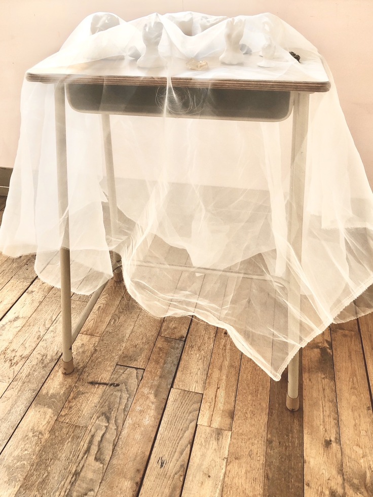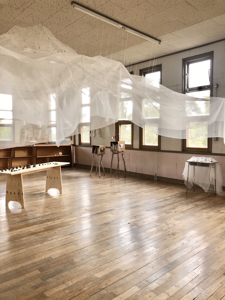 私は旧図書館のあのおおらかな2階の空間に、今自分が置いていけるものとして作品を、いくつか展示させていただいています。