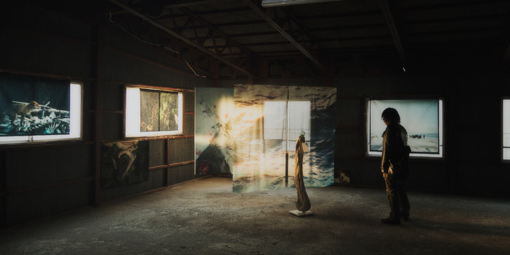 知床をフィールドに活動を行う表現者による作品展示です。写真、音、テキスト、編み物など、異なるメディアが互いを越え出て交錯し、響き合う空間を創出します。