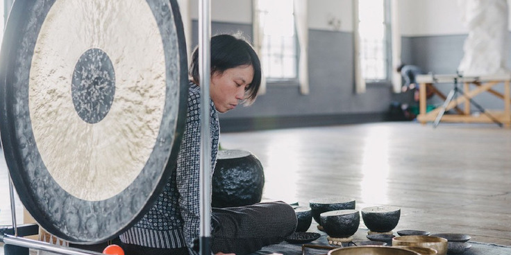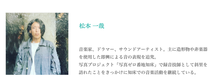 音楽家・サウンドアーティスト・ドラマー松本一哉によるライブです。波紋音(はもん)」という水琴窟のような音のする鉄製の音具、音階も定まっていない様々な造形物や非楽器などを使用し、自身の演奏と、周囲から聴こえてくる環境音とを繋げていき、空間全体を聴く事で体現・体験する即興演奏です。