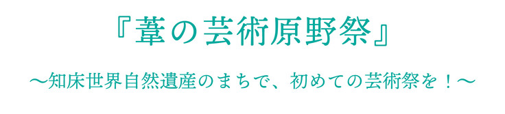 『葦の芸術原野祭』は、世界自然遺産のまち知床半島・斜里町に集う有志メンバーが開催する初めての芸術祭です。本芸術祭のタイトルは、 斜里(シャリ)という地名の語源であるアイヌ語「葦の原」に由来します。 多義的な意味合いを持つ「葦」の原を逍遥しながら、芸術という「想像力の原野」を育てていくためのプロジェクトです。