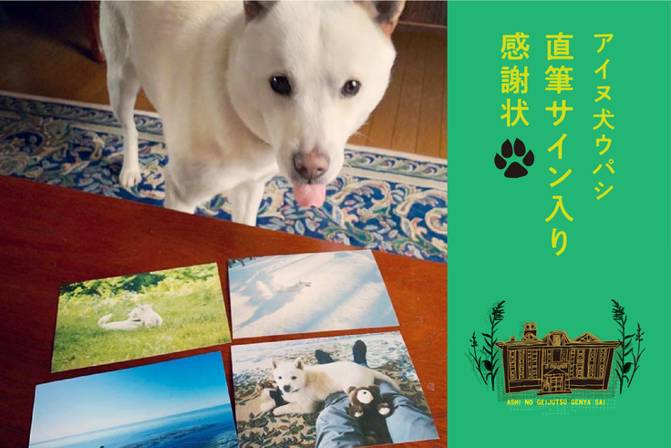 ②まるごとあしげいコース(アイヌ犬ウパシの感謝状+『黒と白と幽霊たち』@葦の芸術原野祭 in知床斜里公演記録DVD+松本一哉収録「風の道 星の部屋」サウンドCD+メイキングフォトアルバムCD+北方の断片的記録誌 siwnin vol.1+ おもいで採集係かがたなおこの「うろうろ通信」冊子)