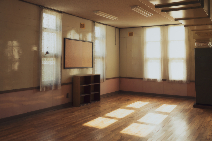 僕自身の想像力は遠く及ばなかったのですが、この建物がどのような形をして、どのような気分をしているのか、どのような気配をもってどのような空気の振動があるのか、というのは扉をくぐり、室内に入り込んで呼吸してみないことにはなかなか掴めないだろうと空想します。この建築の持つ光の数量や空気の入り方、素材の編集のされ方と経年による消耗の具合には特別な個性があって、しかし斜里町に生まれ育った人以外、この建物を知る人はそれほど多くはないように思うのです。ですからこの建物は、世界中に暮らす大勢の意識の外でぽつねんとたたずむ老建築、という言い方ができるのかもしれません。斜里町という町の中で、行政の中心としての役場庁舎、記録の集散地としての図書館の用途を全うした後、今日まで特段の用途を与えられることなく静かにこの場所で時間を過ごしていたこの建物は、山林深くに生きる鹿たちのように、人々の意識の遠くにあったのかもしれません。