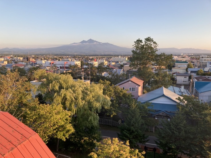 斜里岳がはっきりと夕暮れに浮かび上がっていました。
