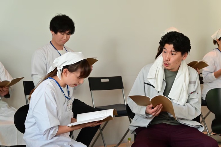劇作家、演出家らまのだの作品を使って、実際にセリフを声に出してみる。