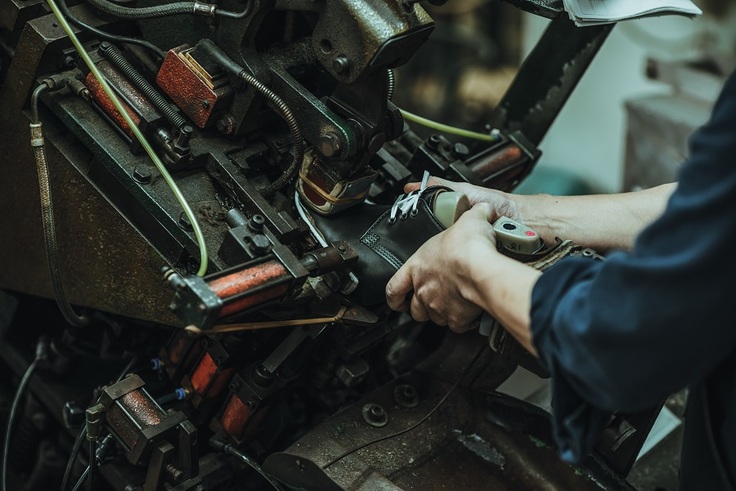 スニーカーの制作を担うのは鉄道沿線の革靴製造の老舗企業 宮城興業株式会社。「革に勝る素材なし、熟練された技に勝る機械なし」を靴づくりの哲学として、1941年の創業以来、職人による最高の靴を追求し続けています。