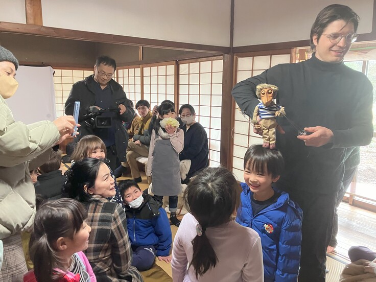 ドミニクさんお手製の人形ルポが参加者のもとにやってきて、一人一人に声をかけてくれました。細やかに動く目や手がとても愛らしく、まるで本物の小動物のようで、子どもたちも大喜びでした。