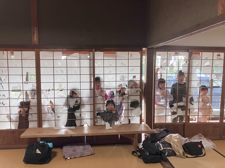 障子はりかえ前のグッドタイミングに遊びにきてくれたみんな。
