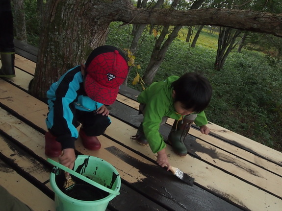 10月4日 ツリーハウスにペンキ塗りをしましたよ!