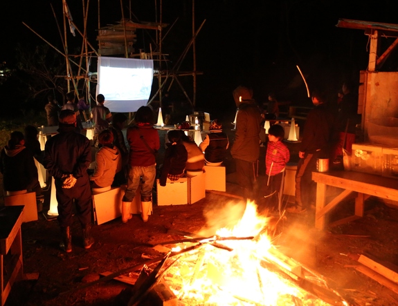 小屋の上から大人も子どももご飯食べながらスクリーンを見てました。上からの眺めは格別^^